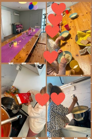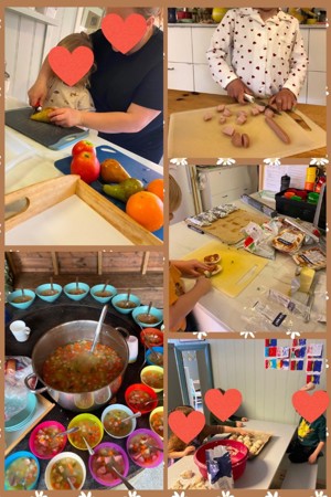 Barna får vere med på forbrede dei ulike måltida.